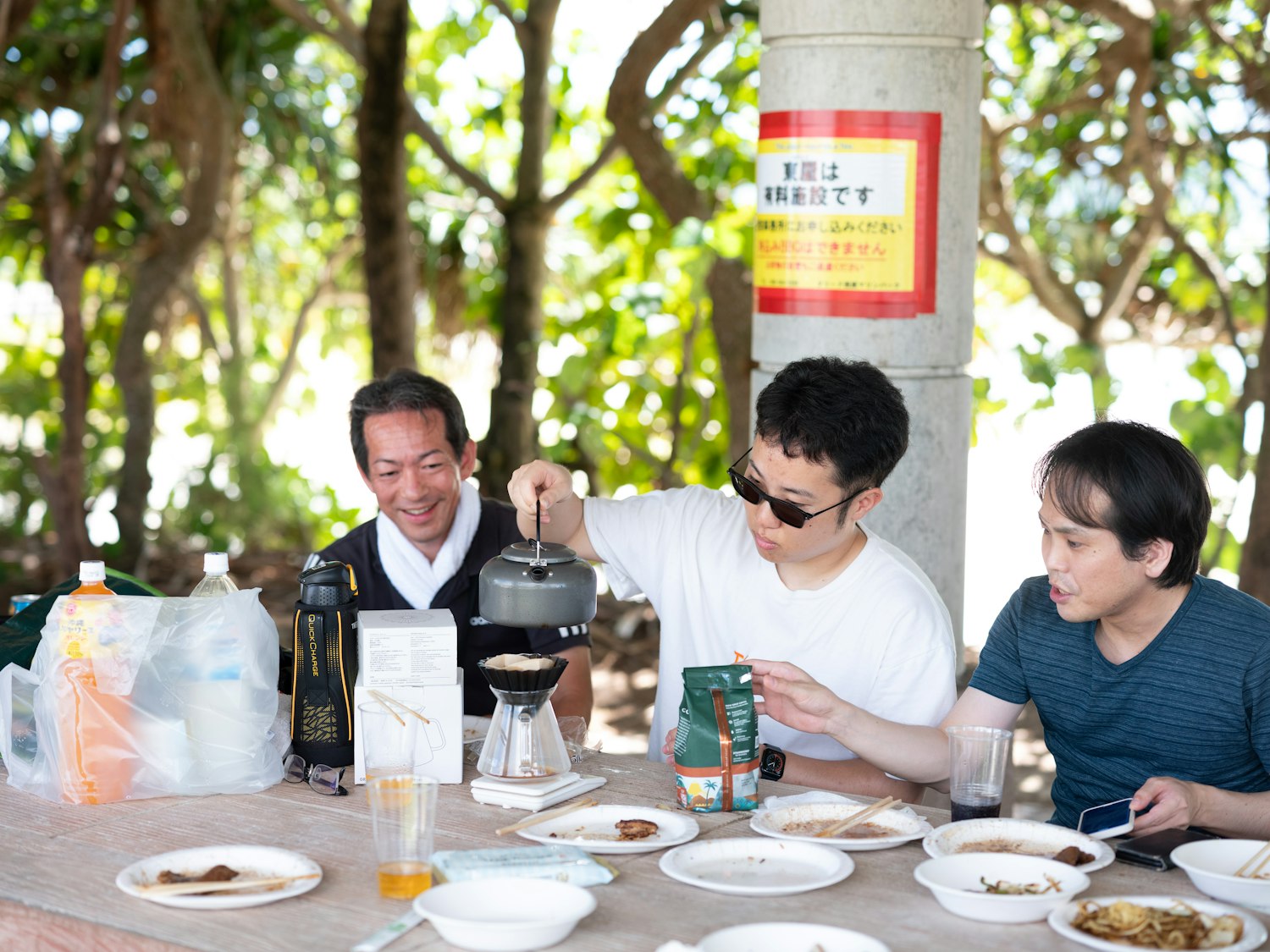 また、今年はコーヒー好きのメンバーがドリップセットを持参し、本格的なコーヒーを振る舞ってくれる場面も。泳いだ後に飲むアイスコーヒーの美味しさは、まさに五臓六腑に染み渡るものでした。